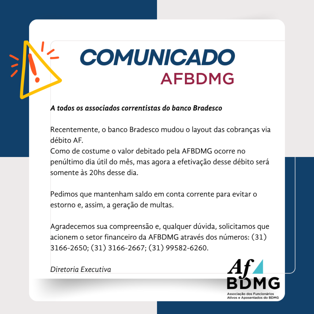 Comunicado AFBDMG – a todos os associados correntistas do banco Bradesco